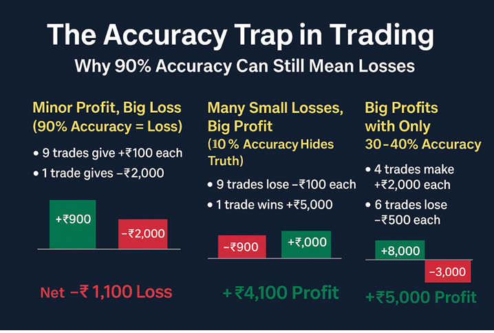 👉 Here, 30–40% accuracy with high reward-to-risk ratio gives sustainable profits.